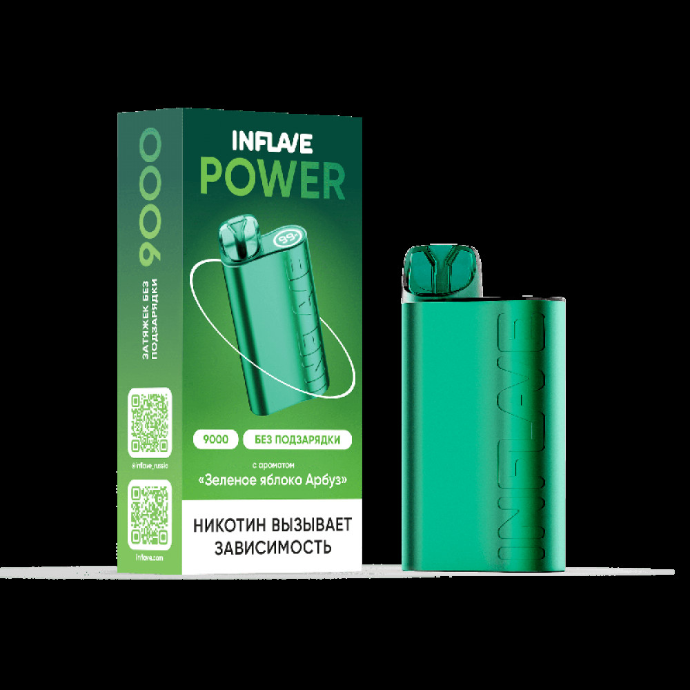 Электронная сигарета INFLAVE POWER 9000 затяжек Зеленое Яблоко Арбуз - купить в Астрахани